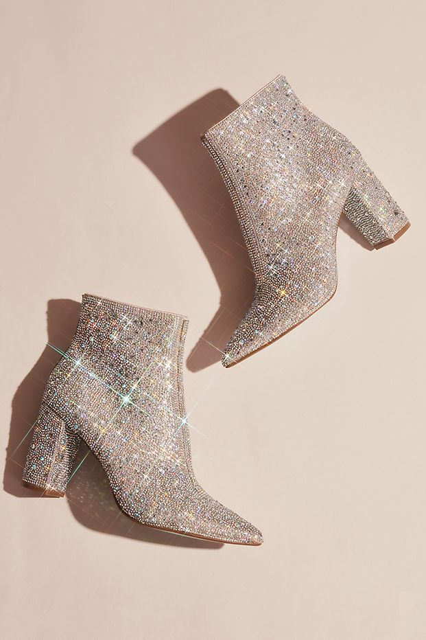 Dare to dazzle down the aisle in these bold and brilliant booties. A classic silhouette gets a major revamp with allover iridescent crystal embellishments. Plus, they can add a glam touch to any bridal shower or bachelorette party look, and can even be worn long after the big day!