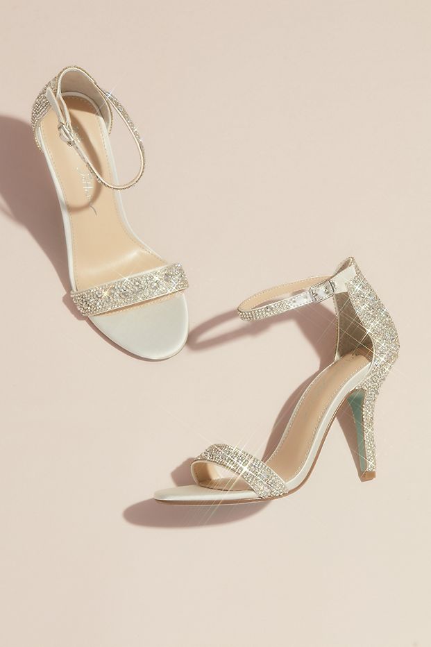 Strut your way into married life in this allover crystal embellished pair of strappy pumps. These wedding-approved shoes will have your guests doing a double take!