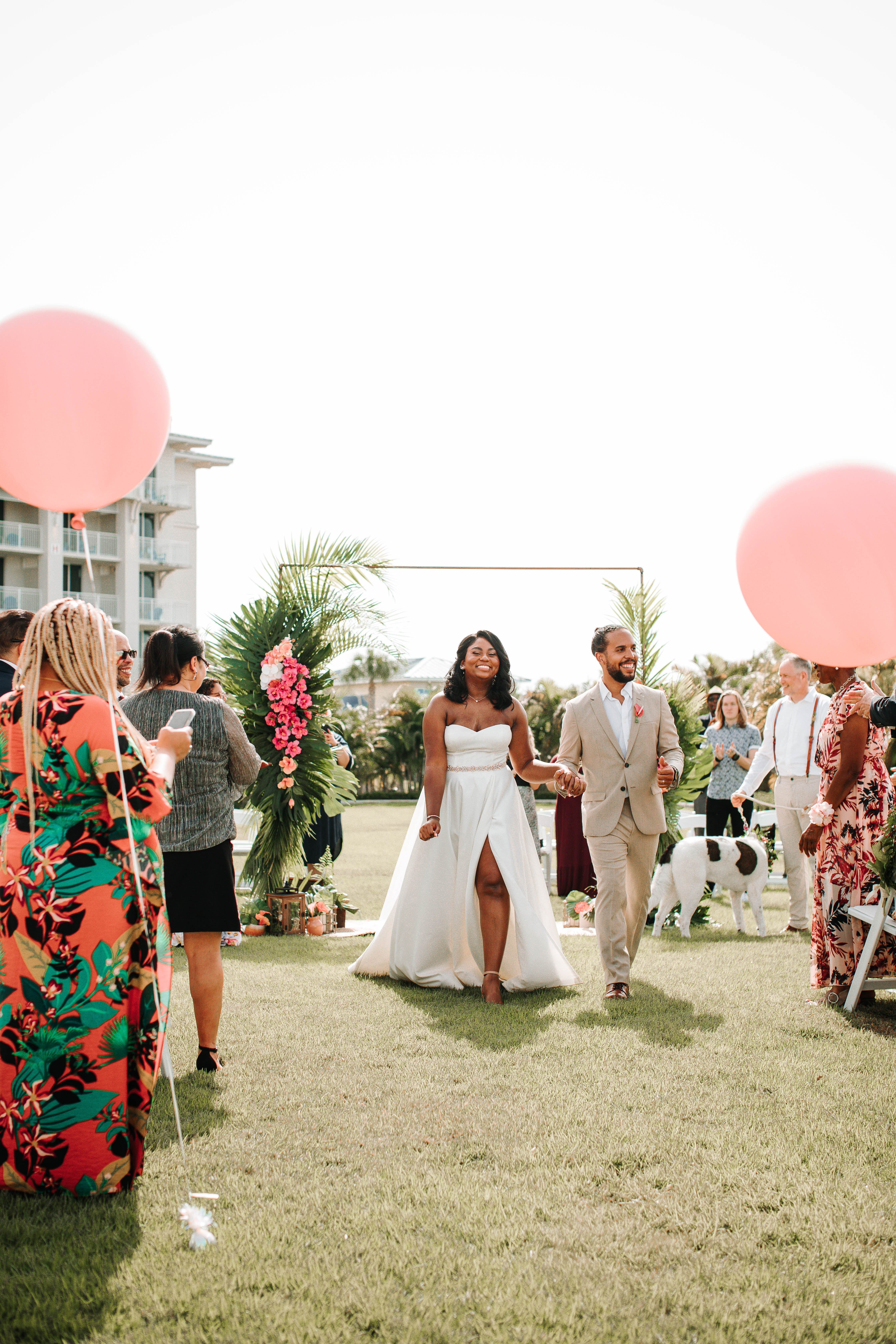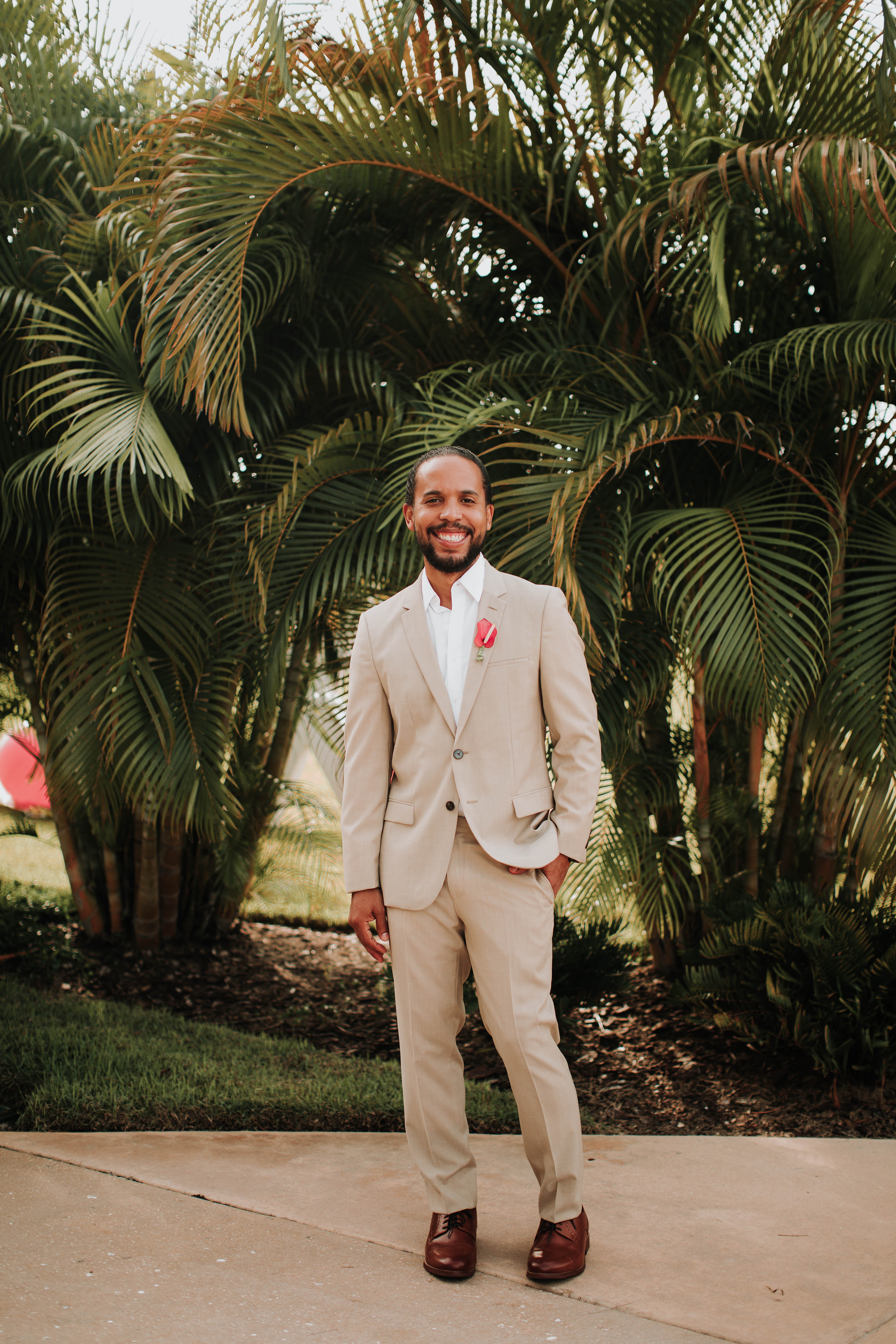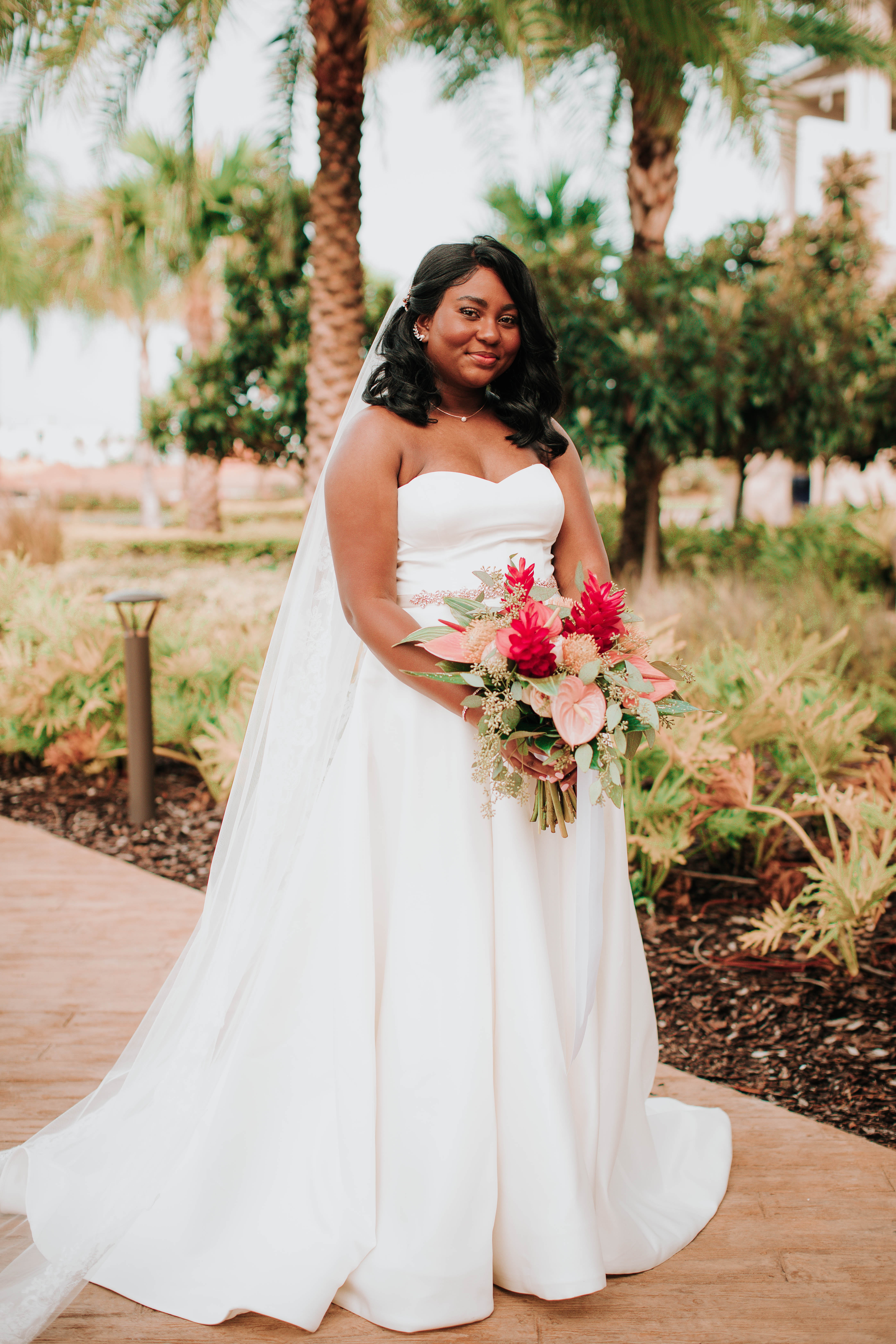 Get ready to be transported to a tropical paradise with this stunning summer wedding in Orlando, Florida. Alecia & Jesus tied the knot in a beautiful wedding held at Margaritaville Resort. Bright florals, luscious green palms, and unique personal touches made this wedding one-of-a-kind. Want to see more? Keep reading for more images from this summer wedding in Orlando.