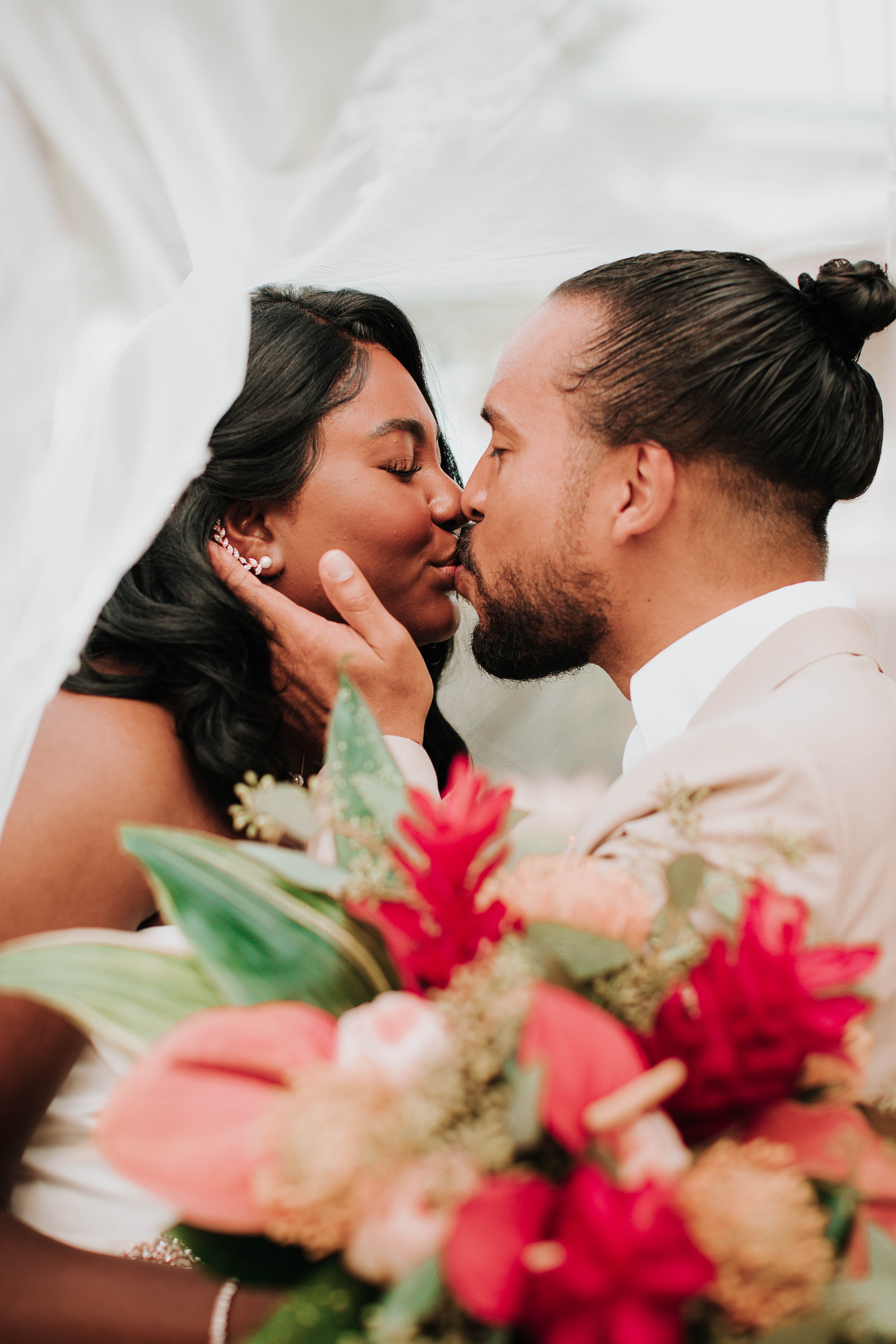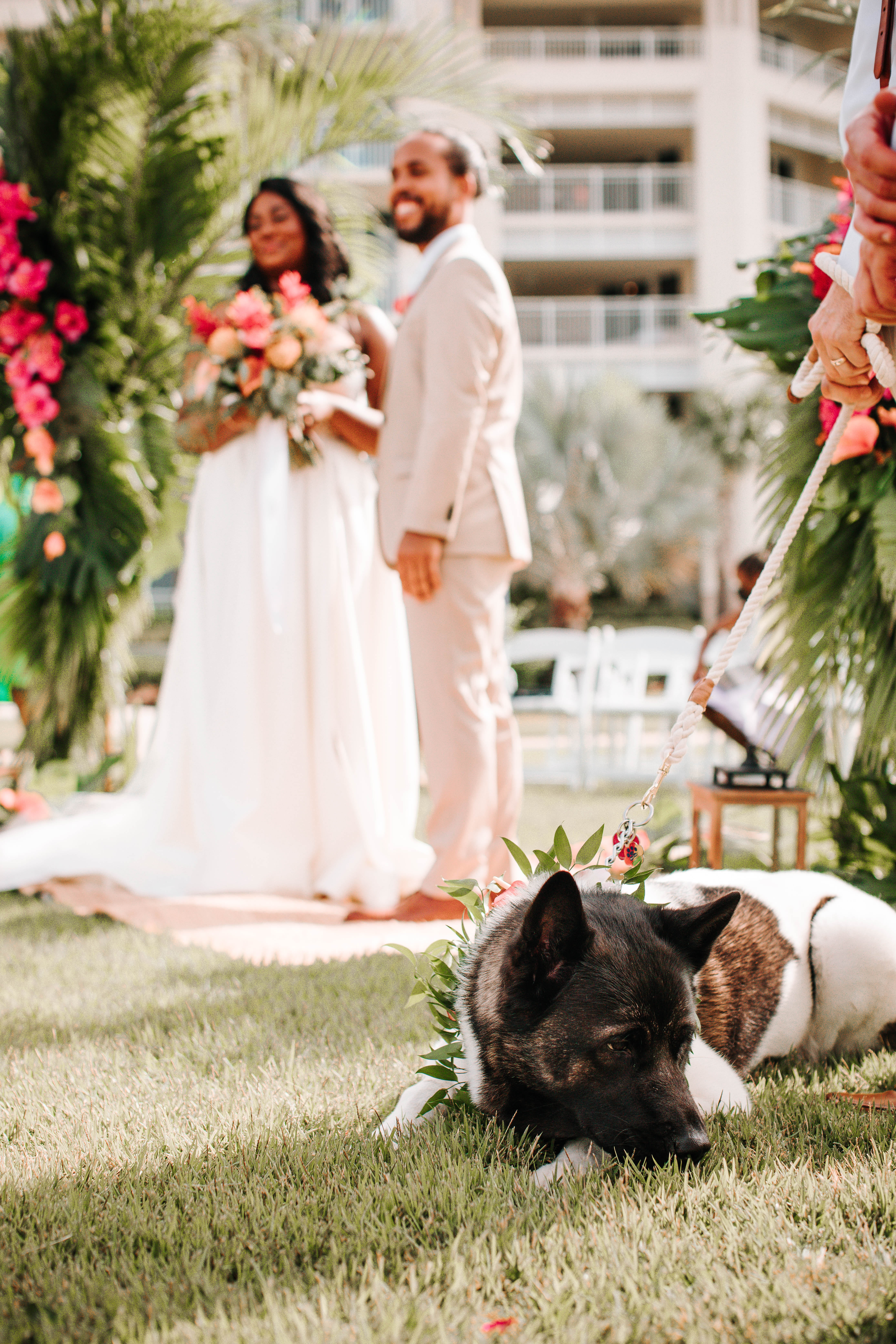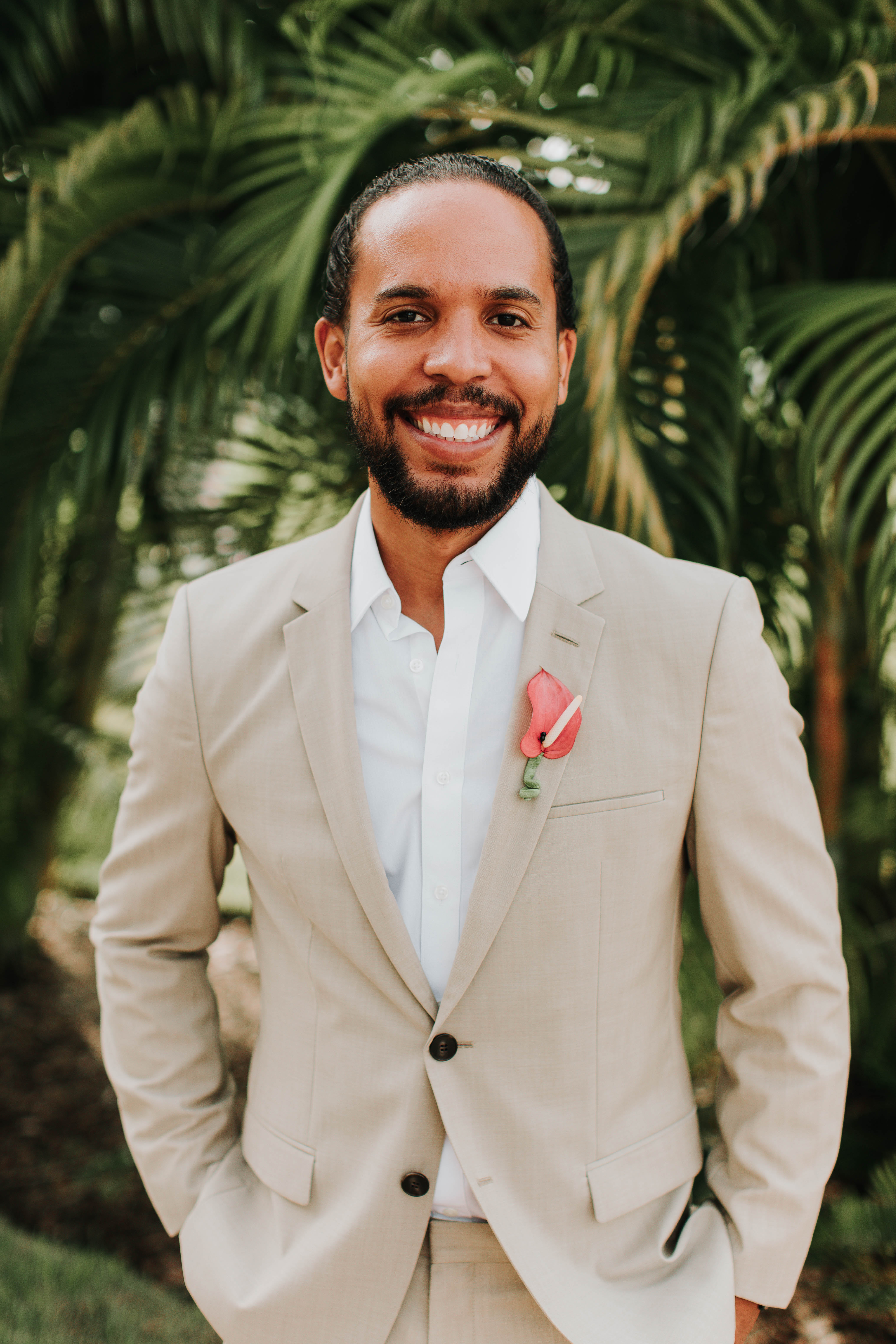 Get ready to be transported to a tropical paradise with this stunning summer wedding in Orlando, Florida. Alecia & Jesus tied the knot in a beautiful wedding held at Margaritaville Resort. Bright florals, luscious green palms, and unique personal touches made this wedding one-of-a-kind. Want to see more? Keep reading for more images from this summer wedding in Orlando.