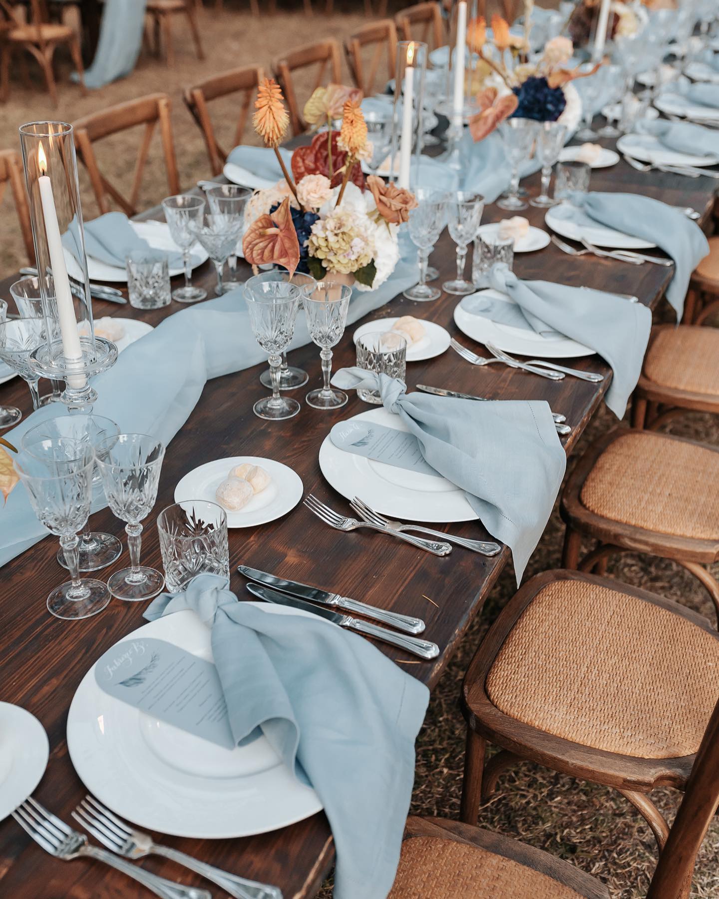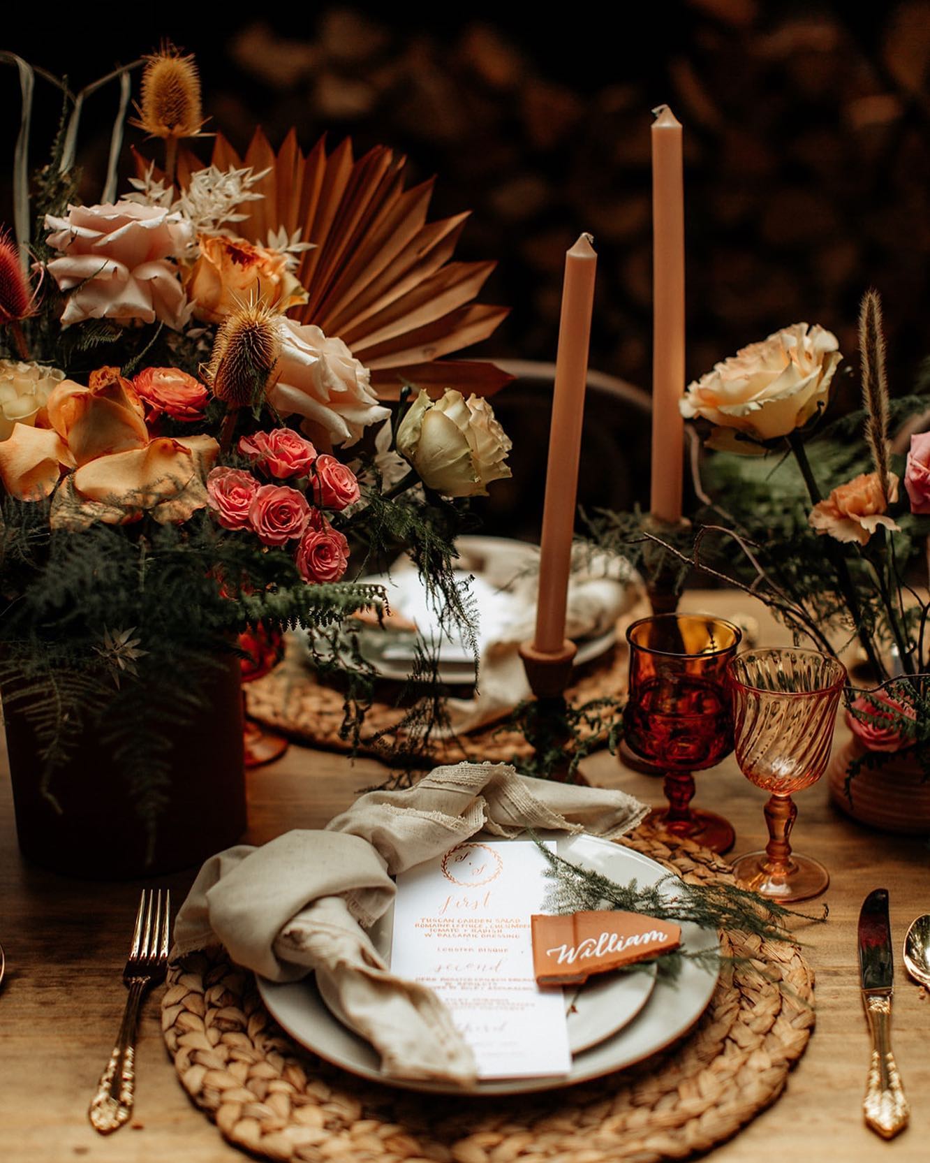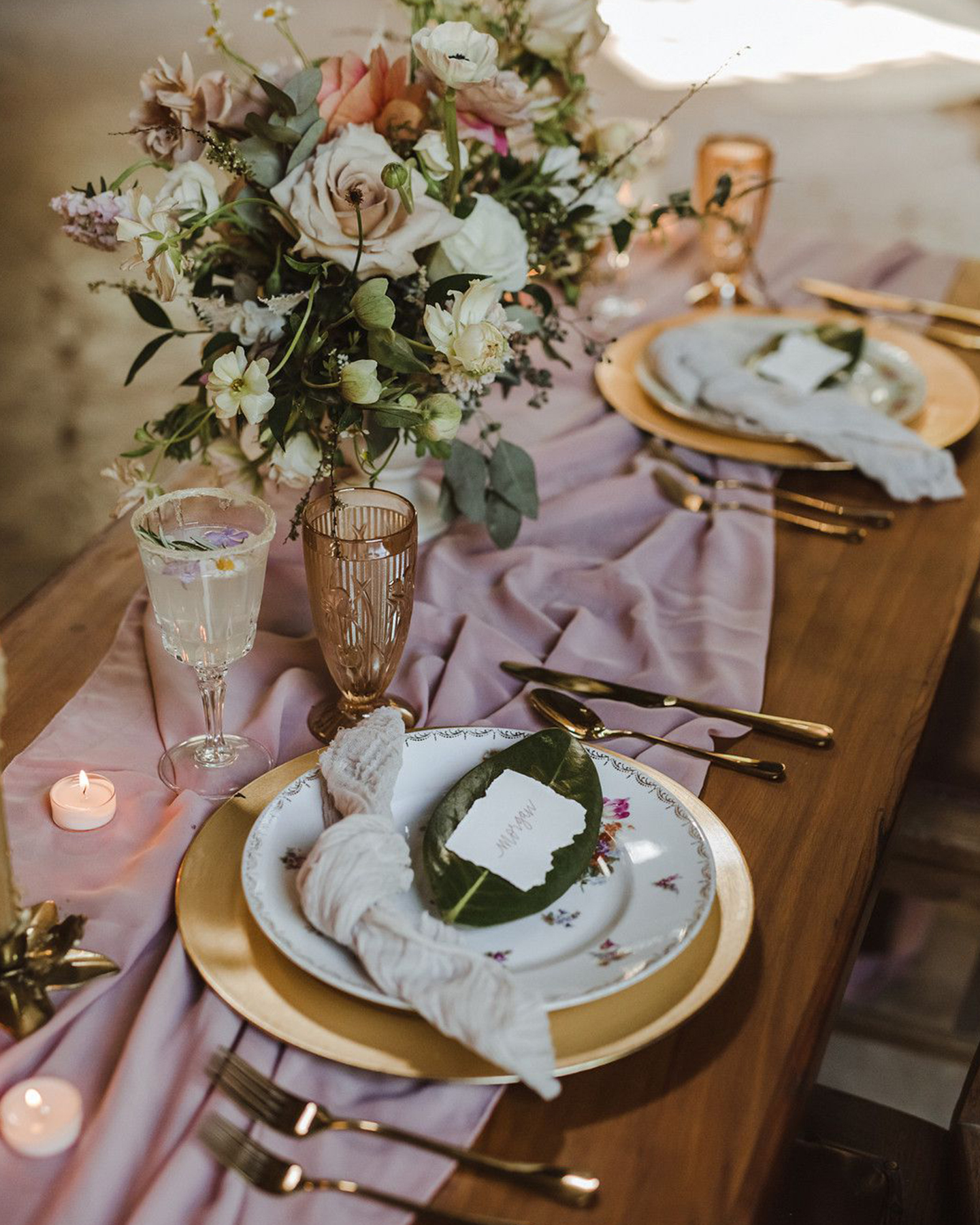 When it comes to your reception, your tables will be a focal point. That’s why so many brides put a lot of thought into what exactly goes on top of each table. Flowers, mason jars, candles? The options are endless! A trend that we have loved to see is colorful tablescapes. They add so much personality to your big day and are a perfect way to tie in your wedding colors to your reception. For more inspiration, visit our post Beautiful Rustic Wedding Tablescapes You’ll Love.