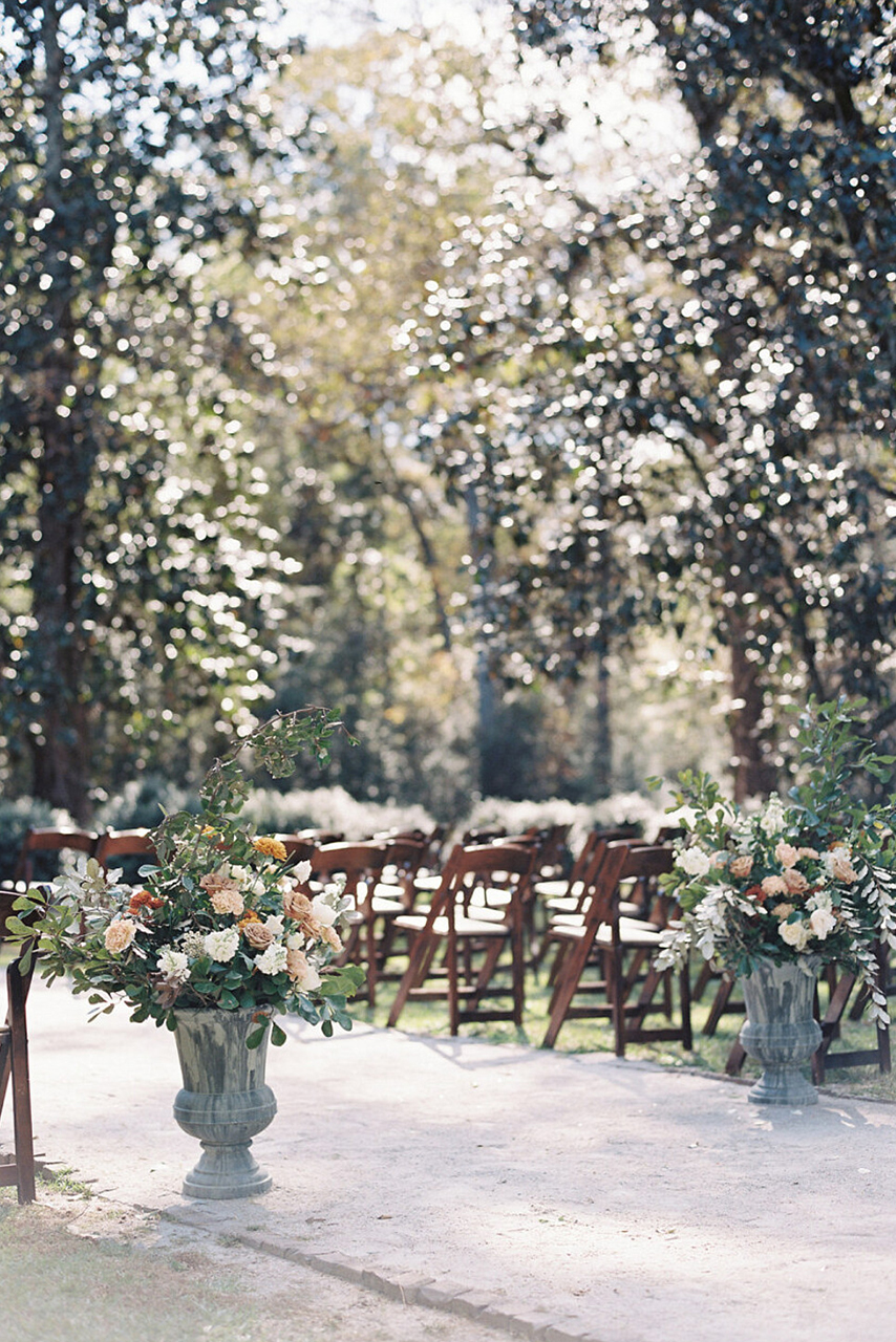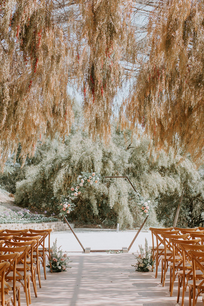 Last but not least on our list of favorite rustic wedding trends is making the outdoors look like indoors. We love this trend because you get the best of both worlds! You get to decorate your ceremony and reception space with all of your favorite rustic pieces against a backdrop of natural beauty. For inspiration on how you can bring the indoors to your outdoor wedding, check out this Charming Bohemian Backyard Wedding.
