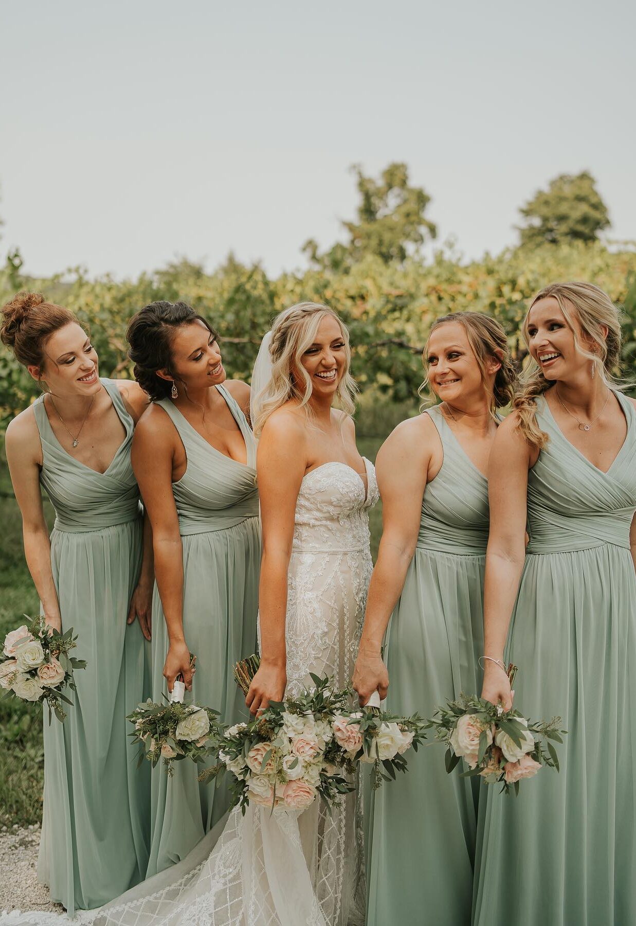 It’s no surprise that the color green is on-trend for the upcoming season! This earthy shade is ideal for both boho and modern brides. Dress your entire party in green bridesmaid dresses or keep reading for tips on how to mix and match into exciting color palettes. Loving all things green at the moment? From your decor to your venue there is no limit on ways you can incorporate your new favorite green hue into the details of your big day.