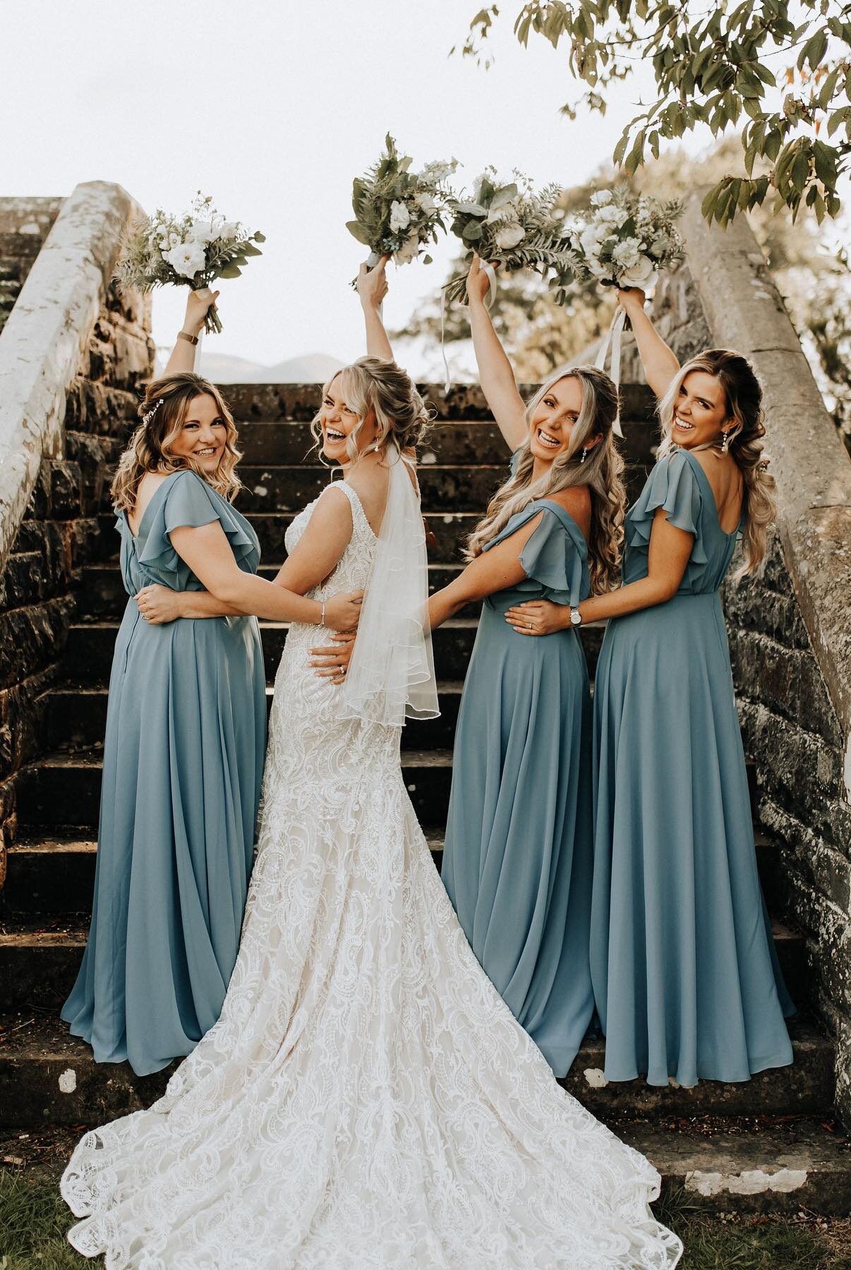 An eclectic bridal party has an effortless feel and adds beautiful dimension to your wedding party (and photos!). In addition, your bridesmaids will appreciate choosing their own styles allowing each individual’s personality to shine a bit. Not to mention, there’s no stress trying to find a color and style that fits and flatters each member of your party.