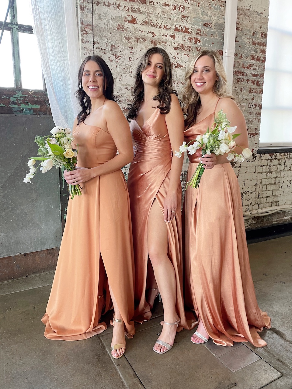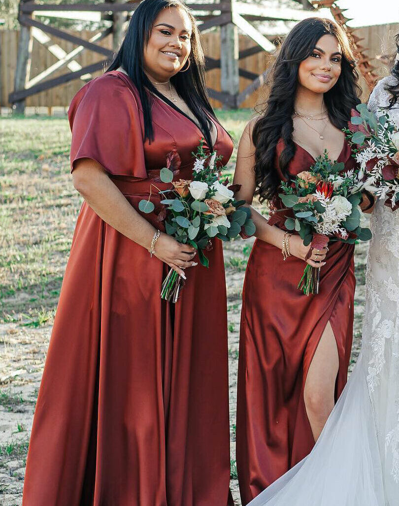These sun-drenched shades feel contemporary with a boho-inspired touch. Read on to see how you can incorporate this rustic hue into your big day with bridesmaid palettes we can’t get enough of. Don’t just stop at orange bridesmaid dresses, add hints of this new hue throughout your wedding for a cohesive color theme.