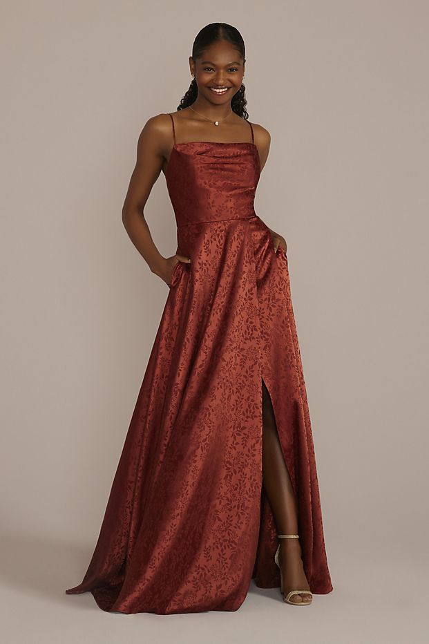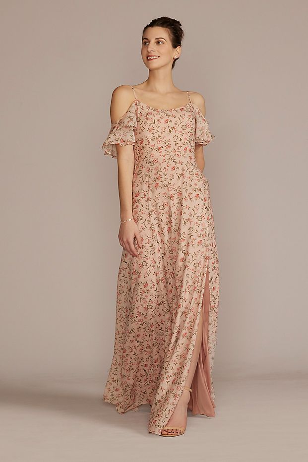Evoke sunrise shades by mixing in Desert Coral, Sand, Sundial and Sedona. Try mix and matching necklines as well as colors to suit each of your bridesmaids. Plus, incorporate floral prints for an unexpected take on natural clay hues that gives each blooming bridesmaid their time to stun.