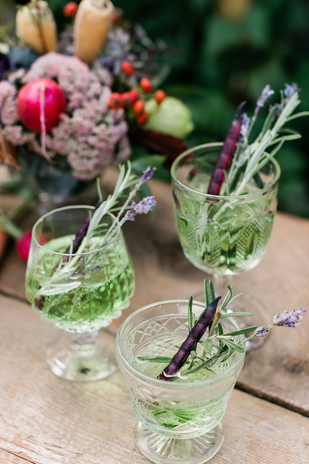 “We swapped flowers and greenery for herbs and fruit to complement the simple design of our cutting cake” – Jana Scott Photography