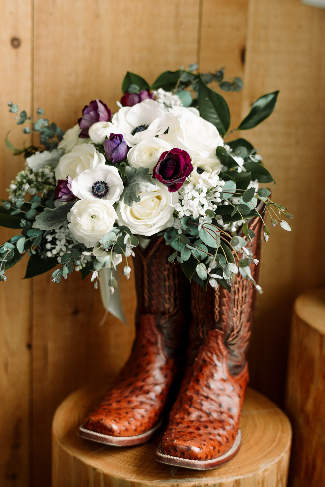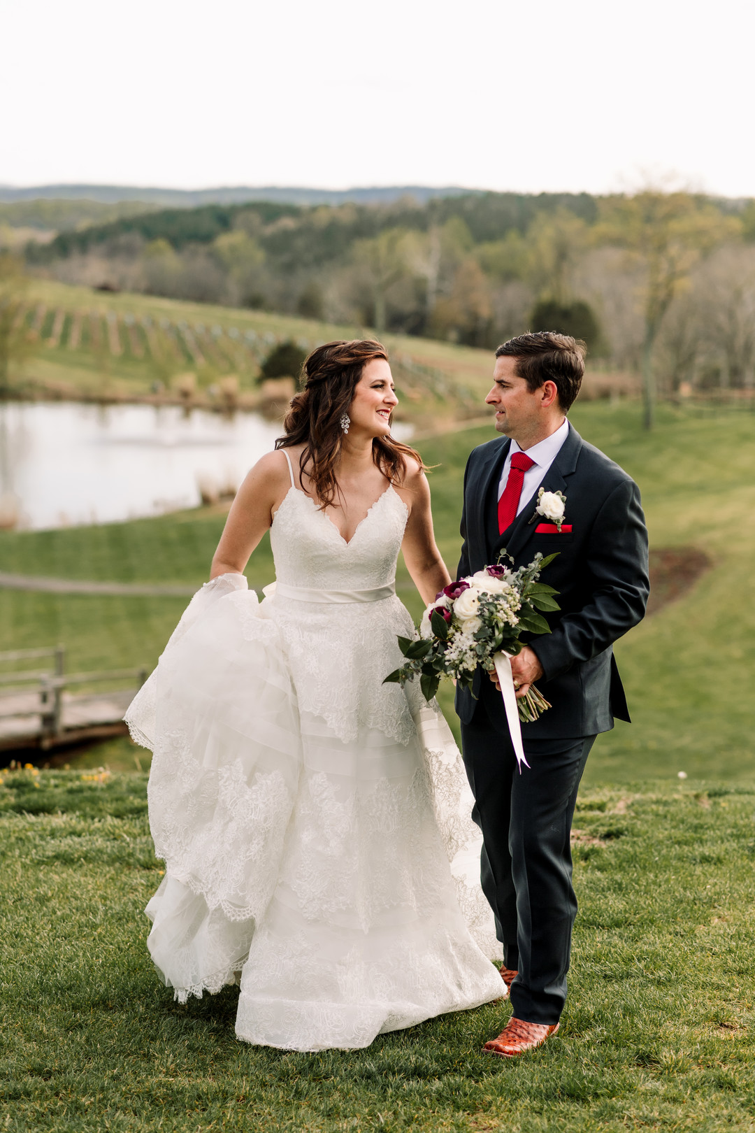 Vineyard locations are often the most perfect rustic wedding location due to their natural style and rustic look. Today’s real wedding took place at a Virginia rustic wedding venue where the bride and groom said their vows outside followed by an indoor reception. From the photographer: Boyce + Natasha’s wedding at Stone Tower Winery was absolutely gorgeous! Considering the days leading up to their day we were plotting our “rain plan” and packing 20 umbrellas, this day was seriously perfect. The sun was shining, every detail was perfectly chosen, and bride & groom couldn’t have been more beautiful! I love the fun cowboy (and cowgirl) boots they wore, the gorgeous grey bridesmaid dresses and Natasha’s gown was just stunning! Thanks to Hannah Leigh Photography. for sharing this one-of-a-kind wedding with us.
