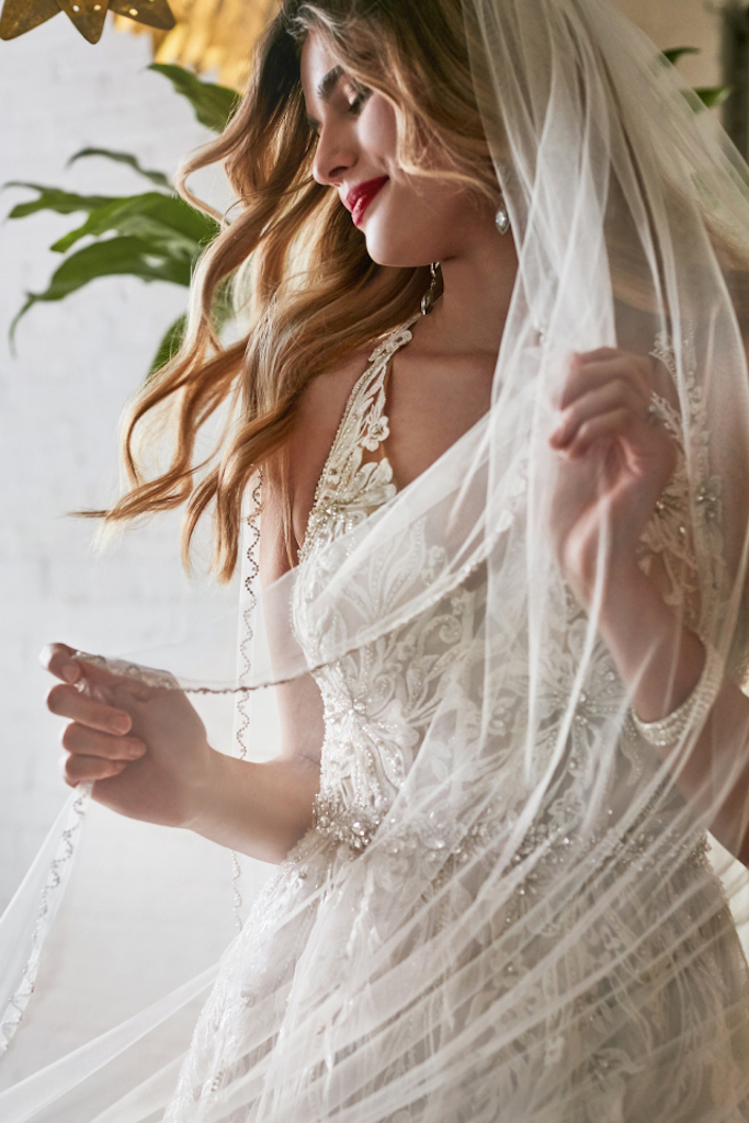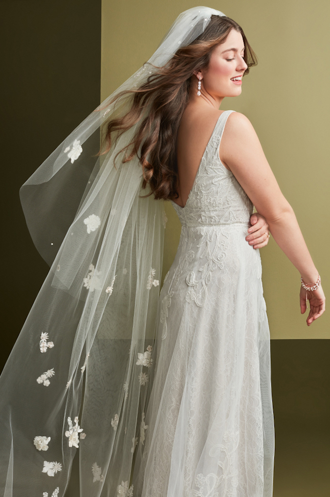 Now that you have found the right veil style for your wedding dress, it is time to talk about veil details! Veils come in a range of shades, tiers, and have different embellishment options that can transform your bridal look.