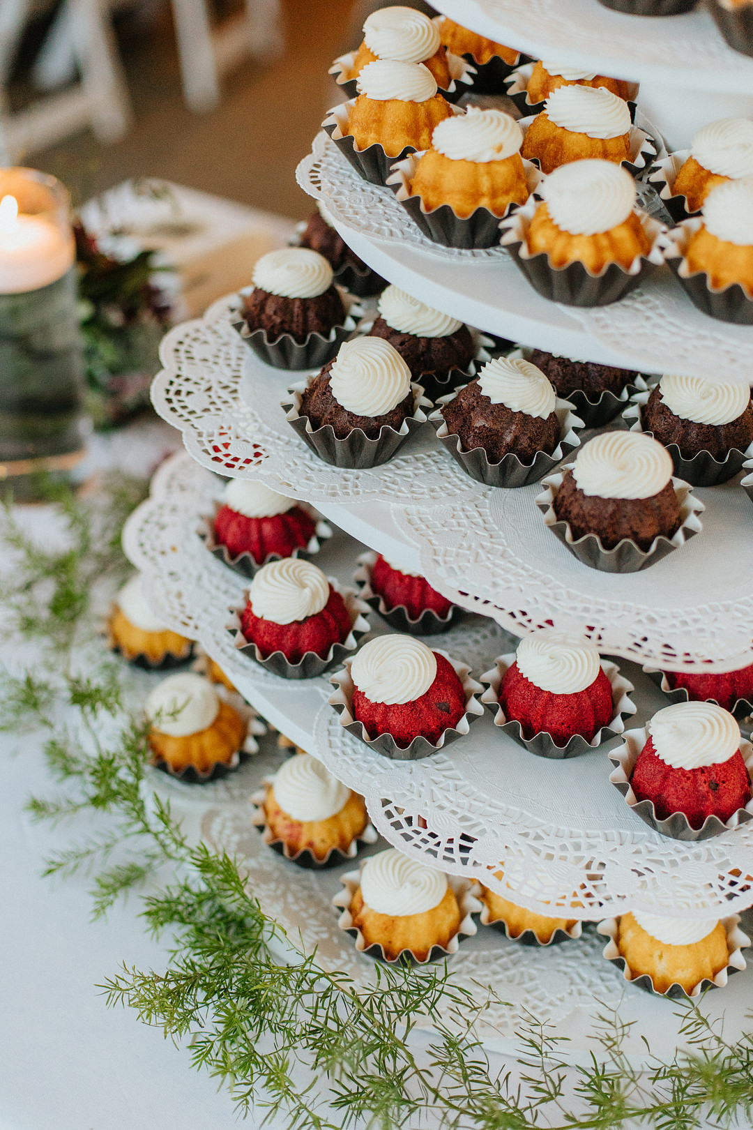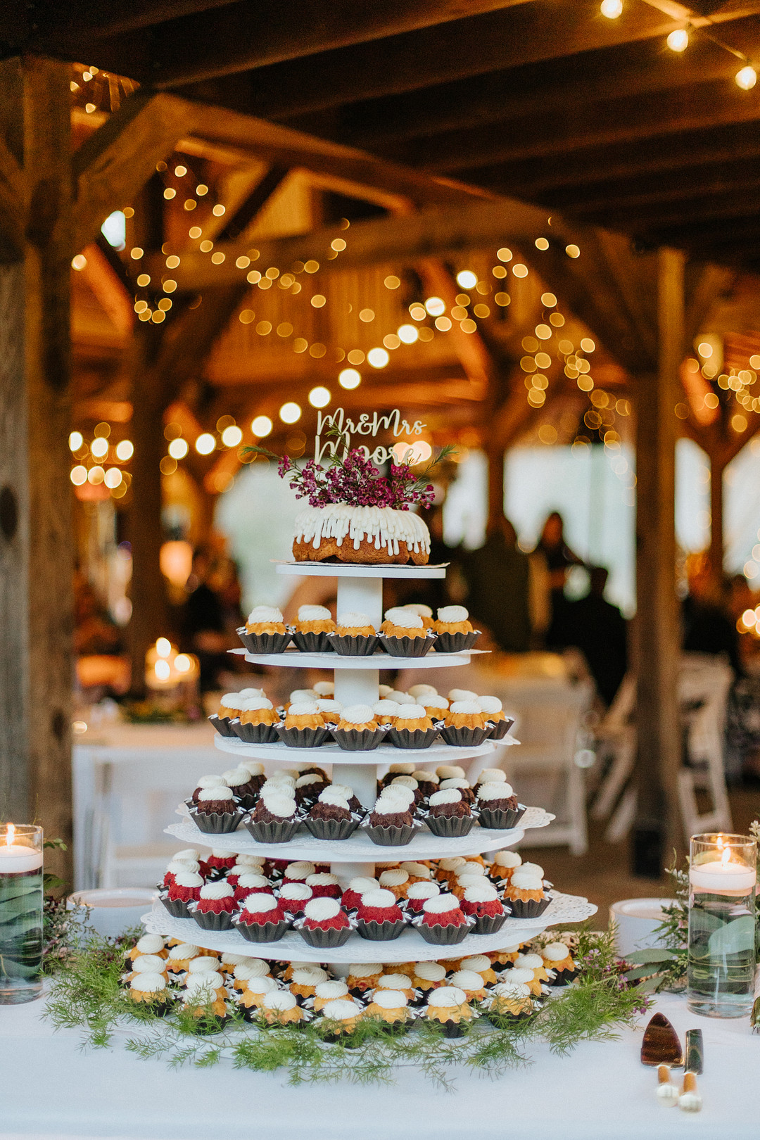 “Instead of a typical cake, they opted for a delicious, buttery bundt cake dripping in sumptuous icing. They cut the big one on the top and then towered a variety of delicious mini- bundt cakes below in different flavors.” — Michelle Elyse Photography