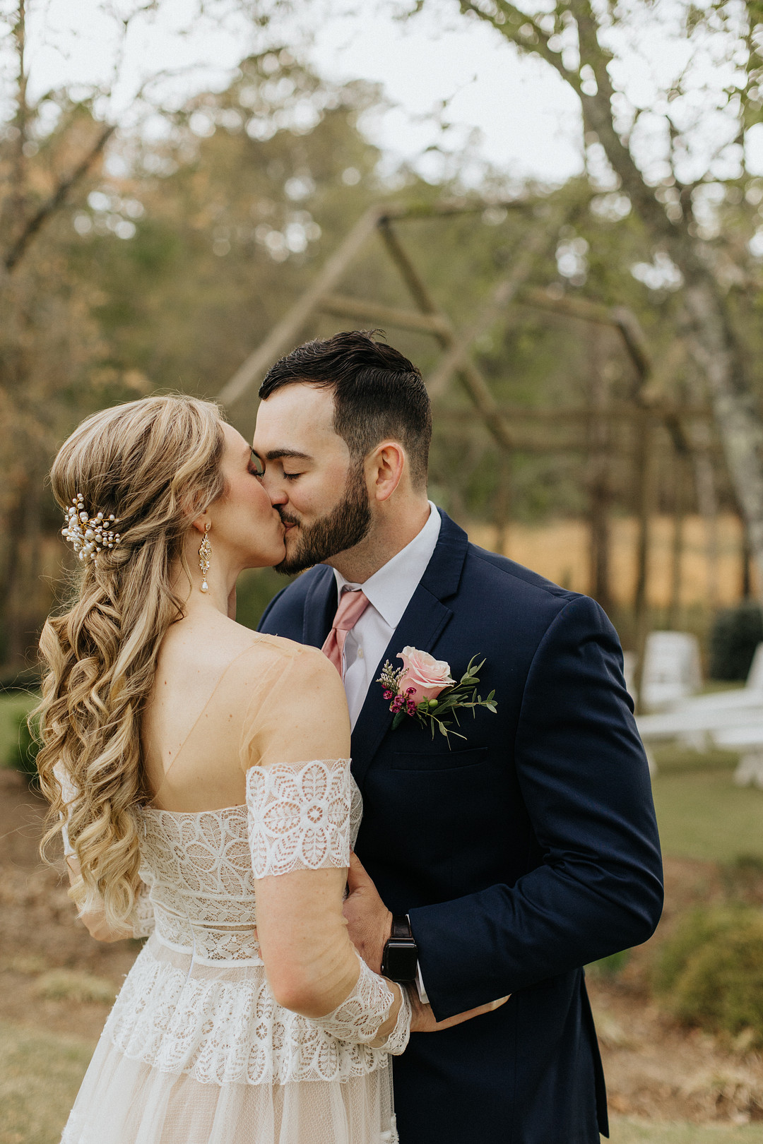 ” Their ceremony was held in the outdoor wooden framed open air chapel, and their reception was held in the barn. It perfectly fit with the rustic, boho, whimsical, country-lover’s vibe that they planned their wedding with.” — Michelle Elyse Photography