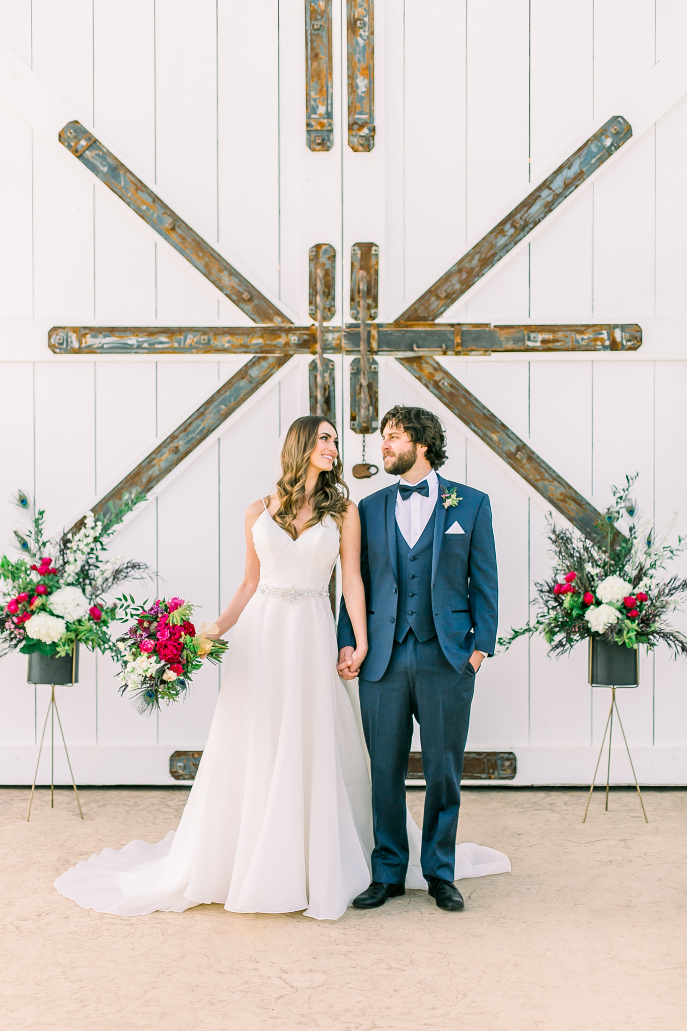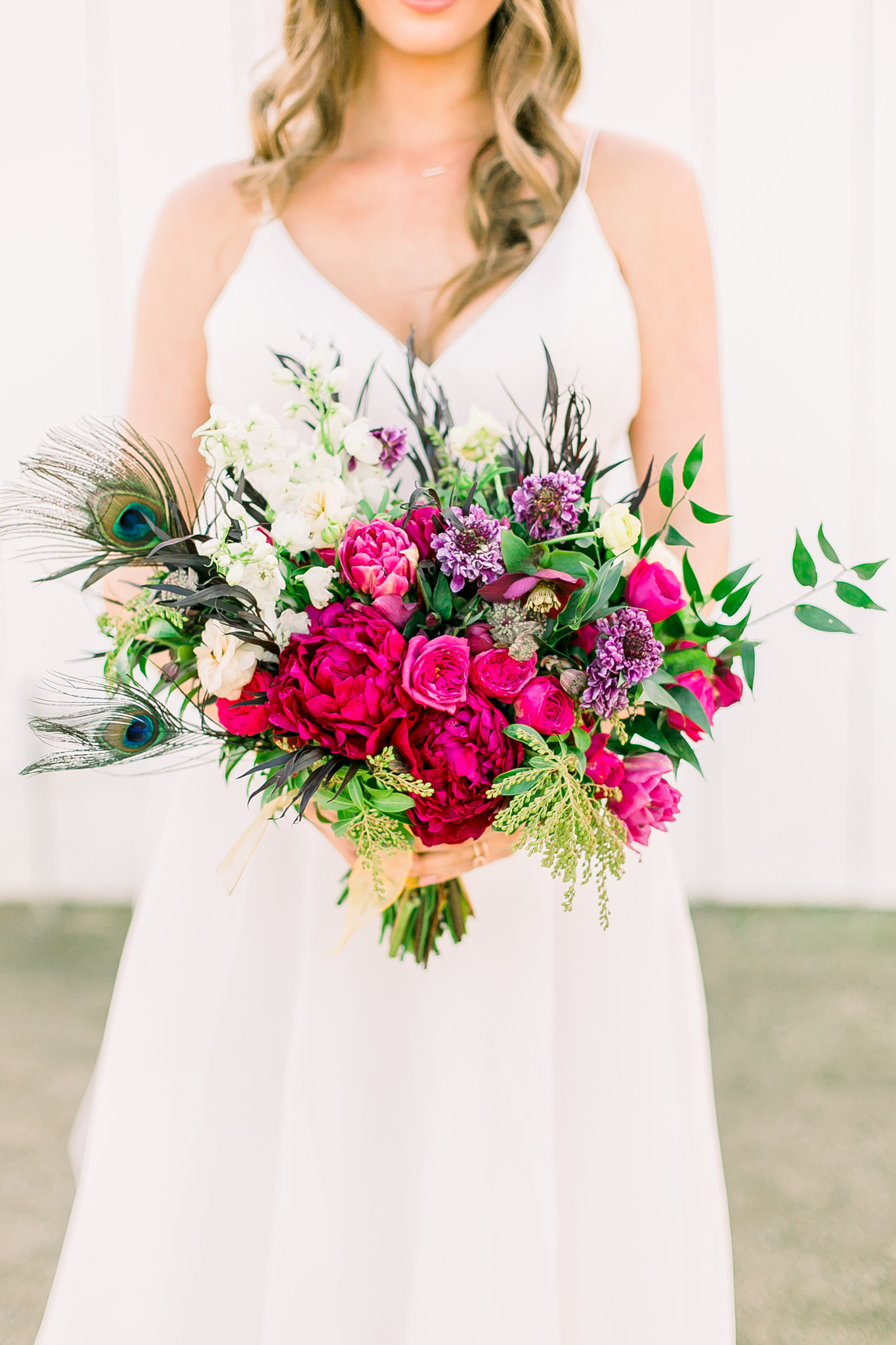 So often we see weddings that feature blush tones, muted tones or metallics so when we got a look at this lovely inspiration shoot and saw the jewel tones we could not wait to feature it! From the photographer: Don’t you love finding unique details in the most unexpected places? The creative team from this inspiration shoot brought bold color to the beautiful White Barn Edna Valley with fun pops of fuchsia and peacock feathers. Nestled along the central coast in Edna Valley surrounded by the Santa Lucia Hills lies the stunning White Barn . Thanks to Kelley Williams Photography for sharing this beautiful inspiration shoot!