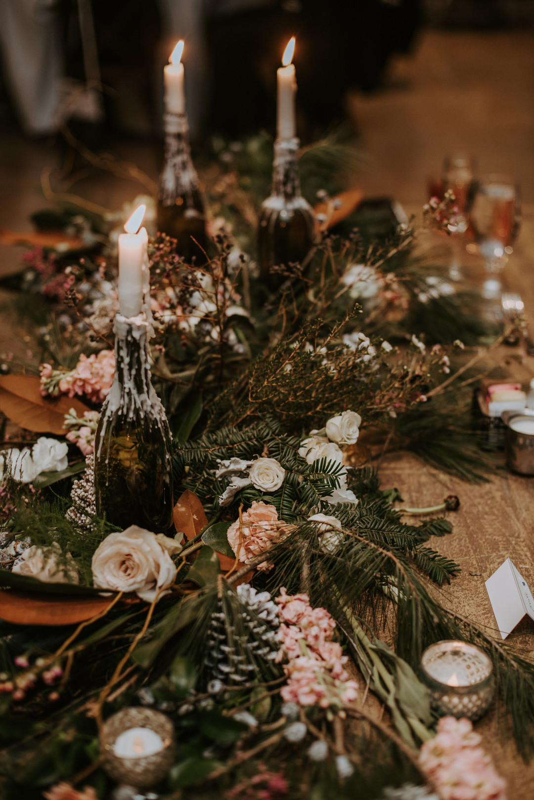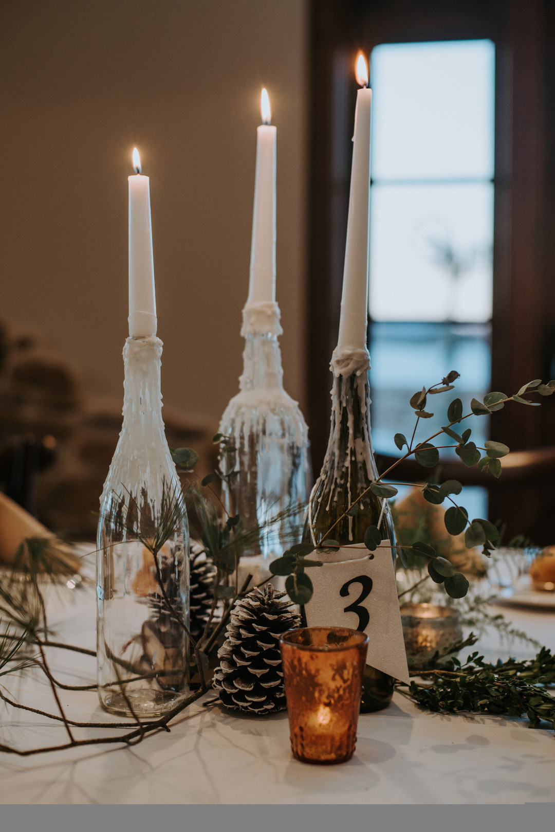 Taking place at the rustic Pennsylvania wedding venue, Folino Estate, this amazing wedding blends together a lovely winery vibe with rustic details. From the photographer: Gina and Nick got married on a snowy winter day at a winery in Kutztown, PA. They shared their first I love you on a trip to the snow covered Colorado Mountains, and wanted to plan their wedding around the memories of that trip. Gina’s strong Italian background lead her to find an Italian family-owned winery that perfectly suited their vision. Their two year engagement allowed them the time to DIY and personalize many of their decor items including melting wine bottle candle holders, and an antique window seating chart. Gina and Nick collected wine corks, wine bottles, and mini pinecones for months to complete their vision! Thanks to Iris and Echo for sharing this wedding.