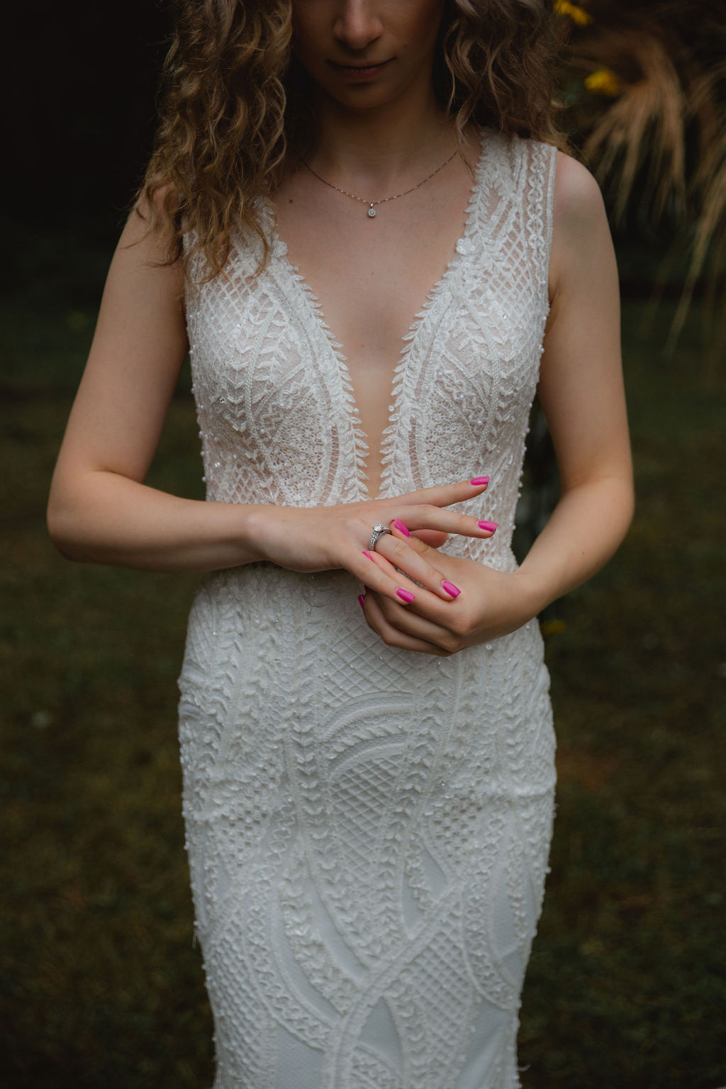 Lush green trees and brightly colored wildflowers set the scene for a dream outdoor wedding for every nature-loving couple. From the photographer: The models are married in real life, so all the emotions and feelings in photos are real. We would love to inspire people to escape the ordinary and get married in forest, mountains, on the beach, wherever they like. A wedding day is a day for the bride and groom to remember. That’s why we believe there should be no rules or restrictions. Everyone must celebrate their love the way they want it to! Thanks to The Kovalchuks for capturing and sharing this stunning woodland wedding inspiration shoot with us.